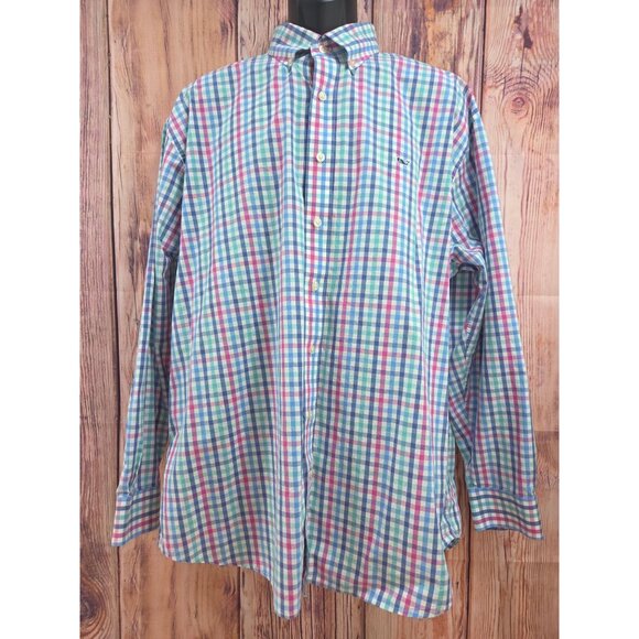 Vineyard Vines Mens XXL Whale Shirt Plaid Button Down 100% Cotton Long Sleeve