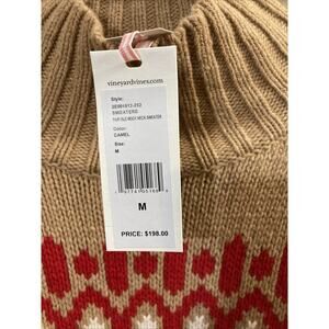 Vineyard Vines Merino Wool Blend Fair Isle Sweater Sz M New Camel Red Mock Neck