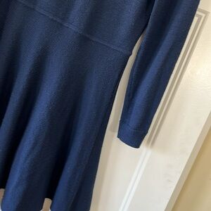 Vineyard Vines Medium navy/cream sweater dress, long sleeves, cowl neck, swing type bottom, armpit to.armpit approximately 18” across, approximately 39” long, lightly worn