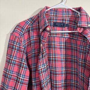 Gently worn men's size medium Vineyard vines midnight twill plaid button up collared shirt. Semi-fitted, 100% cotton, Please review all photos for any signs of wear-pictured as is. Disclaimer: Any items with any wear/staining has not been treated, and unsure of ability to remove/treat condition. Comes from a smoke free home, bundle with other items to save & minimize shipping cost.