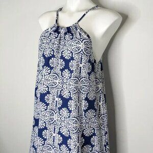 Vineyard Vines Mirrored Leaves Trapeze Halter dress in Moonlight Blue & White