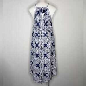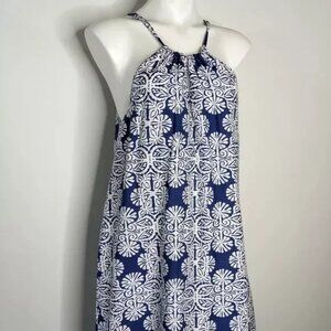 This is a gently preloved Vineyard Vines Breezy Blue & White Silk Blend Tie-Neck Dress.