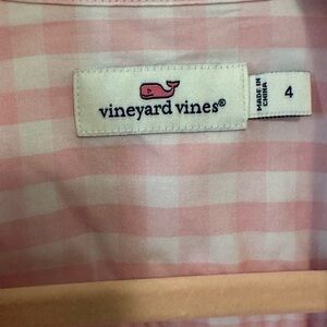 This classic button-down shirt from Vineyard Vines features a timeless pink gingham pattern, perfect for a preppy and casual look. Crafted from lightweight cotton, it offers comfort and style with its long sleeves and classic collar design. Bundled with the matching 2T matching design that is an adorable little girl dress with a belt included. Worn once! Excellent condition no stains or tears.