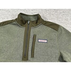 Vineyard Vines Mountain Sweater Mens Medium Green 1/4-Zip Pullover Chest Pocket
