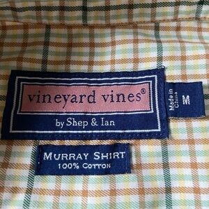 Vineyard Vines Murray Button Down Shirt Brown Green & White Plaid Cotton Medium