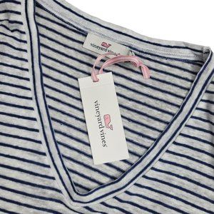 Vineyard Vines NWT linen jet stripe deep bay navy white striped breathable tee L