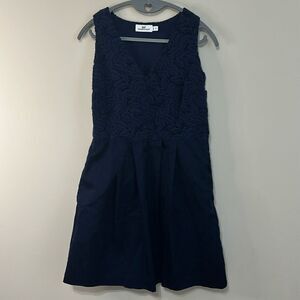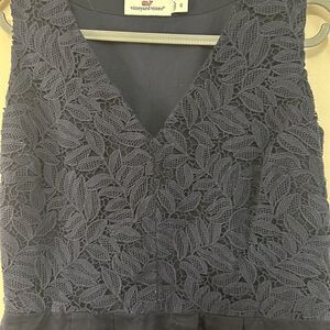 Vineyard Vines Navy Blue Lace Contrast Dress Size 0 Sleeveless Pleated V-Neck