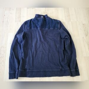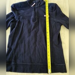 Navy blue quarter-zip sweatshirt. Features a classic design with a comfortable fit. Perfect for casual wear.