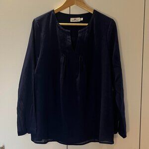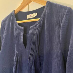Vineyard Vines Navy Blue Silk Cotton Crepe Tunic Blouse Size M