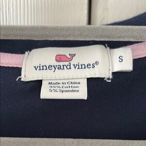 Classic navy polo shirt by Vineyard Vines with stylish pink accents. Good used condition, slight fading in a few spots but barely noticeable (pictured).