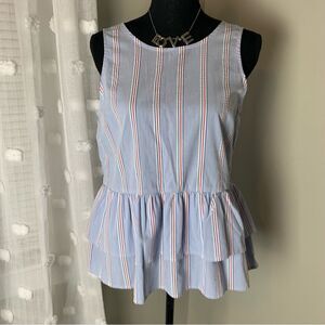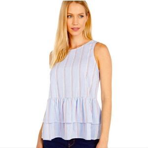 Vineyard Vines Nicholls striped light blue peplum tiered hem sleeveless top