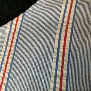 Bimini blue crew neck with vertical stripes. Tie at the back of the neck with keyhole as well. Machine wash. 31% cotton 30% rayon 19% nylon 18% polyester 2% spandex. EUC. Approximate measurements taken laying flat: