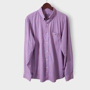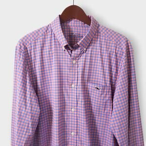 Vineyard Vines OTG Performance Nylon Shirt Classic Fit Orange Blue Gingham Sz Lg