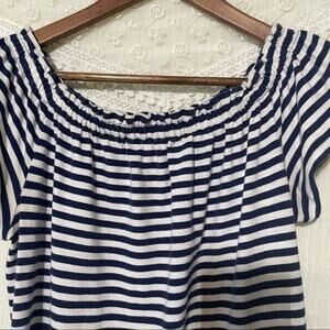 Vineyard Vines Off Shoulder Navy White Striped Jersey Dress XS Preppy Cute