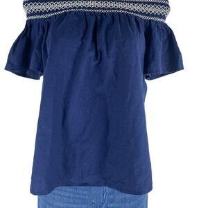 Vineyard Vines Off the Shoulder Embroider Linen Top Navy Blue Size XS