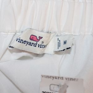 Vineyard Vines Off-Shoulder White Dress with Navy Embroidery