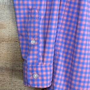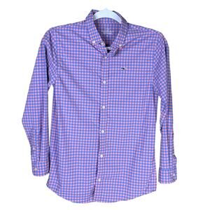 Vineyard Vines On The Go Gingham Button Down Shirt Blue Pink Size Medium 12 14