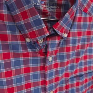 Vineyard Vines On The Go Performance Shirt Mens M Red Blue Plaid Button Down