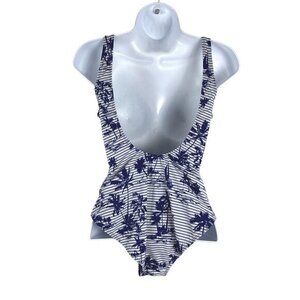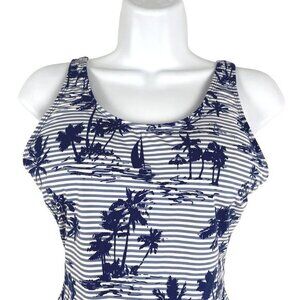 Vineyard Vines One Piece Swimsuit Small Stripe Scene Print Low Back NWT SW-1811