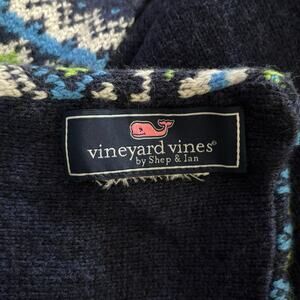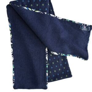 Vineyard Vines fair isle scarf. Plain blue on the back. One Size. Material content tag has been removed but it is 38% Viscose, 35% Nylon, 22% Merino Wool, 5% Alpaca. Approx. 85” long. Preowned, no flaws.