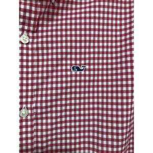Vineyard Vines PERFORMANCE Youth MED 12-14 Whale Shirt Long Sleeve Red Check EUC