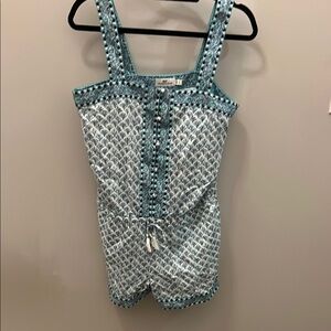 Vineyard Vines Paisley Romper Embroidered Pull-On Button Front Tie Waist Tassel