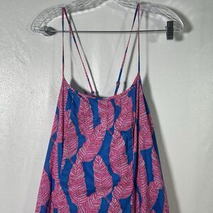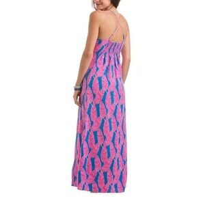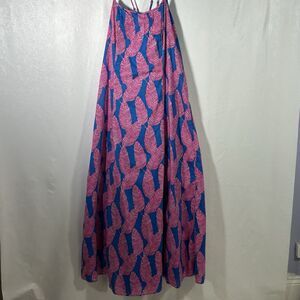 Vineyard Vines Palm Print Maxi Dress Sz 8 Blue Pink Strappy Tropical Boho Summer