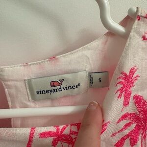 Vineyard Vines Palm Tree Smocked Linen Dress Pink White Size Small