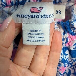 Vineyard Vines Pampanga Ocean Print Coastal Off Shoulder Linen Blend Mini Dress