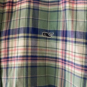 Vineyard Vines Pastel Green Pink Plaid Whale Shirt Mens XL 100% Cotton. Button down cotton shirt with pastel green, pink, blue, and white. In great condition with no snags, rips, holes, etc.