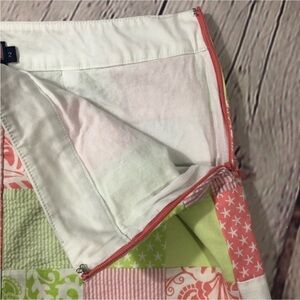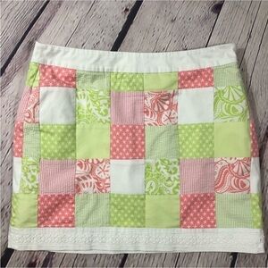 Vineyard Vines green, pink, and white patchwork textured skirt
