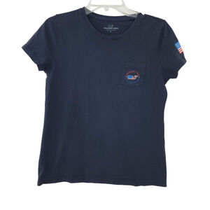 Vineyard Vines Patriotic Shirt Small Women Navy Blue Short Sleeve Top