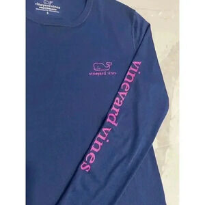 Vineyard Vine's Performance Blue Long Sleeve Top Pink Logo Women's Small