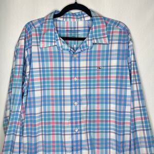 Vineyard Vines Performance Blue Pink Plaid Long Sleeve Shirt Men Size XXL