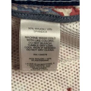 Vineyard Vines Mens Performance Breaker Shorts. Red with Blue and White Fish Pattern. Has zip up button closure. Has front pocket and back pockets that have button closure. A buttonhole has stiching that is fraying. One of the pockets has a flaw in the hem. See pictures. Size 34 (5307)Measurements: Waist 36" Inseam 8.25" Rise 12"