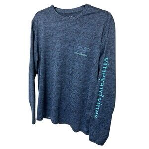 Vineyard Vines Performance Mens Heather Blue Whale Long Sleeve Pullover Shirts
