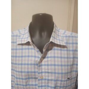 Vineyard Vines Performance Shirt Classic Fit Tucker Mens XL Blue Pink Plaid