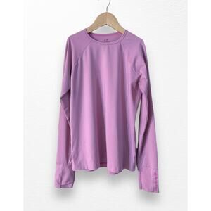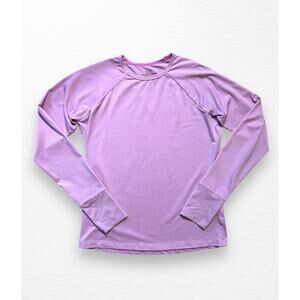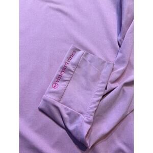 Lilac pink long sleeved performance shirt from Vineyard Vines in girls' size L (14). Moisture wicking blend of 90% polyester/10% spandex. Cuff has a Vineyard Vines logo and both sleeves have thumb holes. Perfect condition.