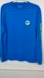 Bright blue long sleeve tee shirt with crew neck. Large whale graphic on back, small graphic on left chest and spell out down the left sleeve. Banded cuffs on sleeves.