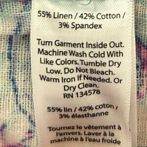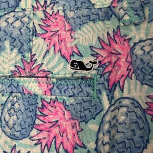 Vineyard Vines Pineapple Print Pant Women's 10 Linen Blend Crop Preppy Pink Blue. Excellent pre-owned condition. Material: 55% Linen, 42% Cotton, 3% Spandex. Button & zip closure, front slant pockets, faux back pocket. Waist 17.5", Rise 10", Inseam 24.5". Fast shipping.