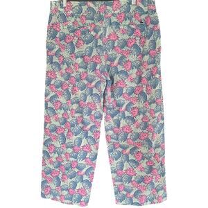 Vineyard Vines Pineapple Print Pant Women's 10 Linen Blend Crop Preppy Pink Blue