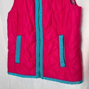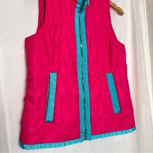 Vineyard Vines Pink Blue Quilted Down Puffer Vest Zip Up Cozy Outerwear