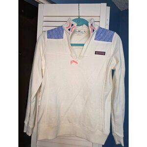 Vineyard Vines Pink White Stripe The Shep Shirt Quarter Zip Whale Logo XXS White