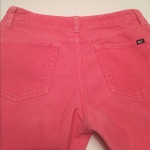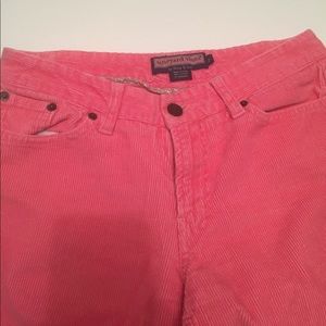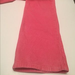 Pink corduroy pants with 3 pockets in front and two in back with zippered closure. 14” waist, 29” inseam and 8” rise