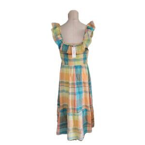 Vineyard Vines Plaid Lemon Tart Smocked Linen Ruffle Midi Dress Large NWT $228
