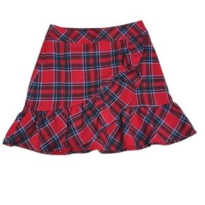 EUC Vineyard Vines Plaid Ruffled Skirt Nantucket Lurex Tartan Red Velvet New size 2