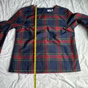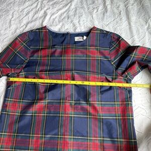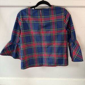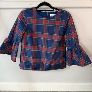 Vineyard Vines Plaid Shirt with Flared Ruffle Sleeves Navy Red Christmas Style