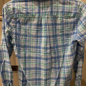 Vineyard Vines Plaid button down. Youth M (12-14). Blue and a little bit of tiffany blue color plaid. Excellent condition. No rips or stains. Smoke free home.
