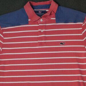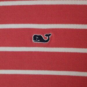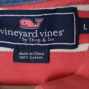 Vineyard Vines Polo Shirt Men's L White Striped Shoulder Patch Collared Cotton