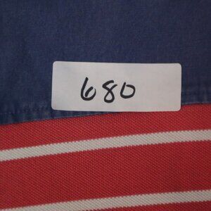 Pre-Owned Vineyard Vines Polo Shirt Men's L White Striped Shoulder Patch Collared Cotton that may exhibit minor flaws or stains.